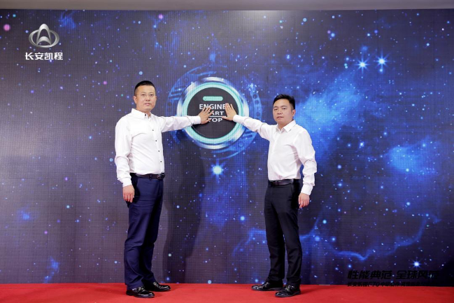 【長安凱程事業(yè)部營銷中心總經(jīng)理李福龍、長安凱程事業(yè)部研發(fā)中心主任兼長安凱程F70項(xiàng)目總監(jiān)雷應(yīng)鋒開啟活動(dòng)】