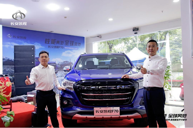 2019年10月10日10:10,以“性能典范 全球風(fēng)范”為主題的中歐合作高性能全尺寸皮卡長安凱程F70實(shí)車到店暨預(yù)售開啟活動(dòng)在重慶舉行。長安凱程事業(yè)部營銷中心總經(jīng)理李福龍、長安凱程事業(yè)部研發(fā)中心主任兼長安凱程F70項(xiàng)目總監(jiān)雷應(yīng)鋒、長安凱程事業(yè)部營銷中心皮卡營銷經(jīng)理路遙等長安凱程領(lǐng)導(dǎo)及長安凱程經(jīng)銷商、用戶代表、全國媒體代表,共同開啟了長安凱程F70的全國預(yù)售,預(yù)售價(jià)10.38萬元起。