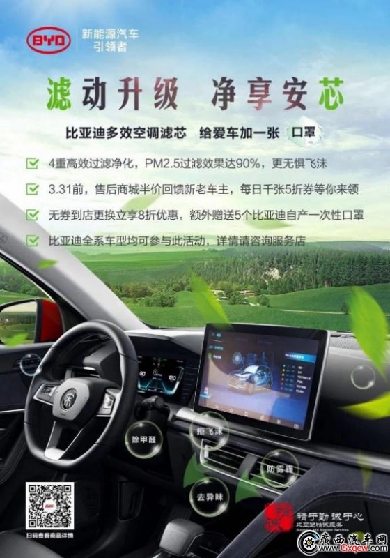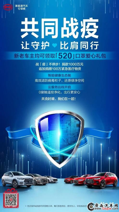 (廣西汽車網(wǎng) 訊)“新冠”疫情的發(fā)展時刻牽動著中國乃至全世界人民的心,當春節(jié)假期即將結(jié)束、各行各業(yè)面臨復(fù)工之際,如何抑制疫情蔓延并且保障自身以及家人的健康安全,成為所有人都最為關(guān)注的問題。為了應(yīng)對特殊時期廣泛的購車、用車需求,比亞迪汽車特別推出了覆蓋咨詢、試駕、購車、維修保養(yǎng)等一系列車主暖心舉措,在盡量減少客戶與外界接觸的情況下,提供最全面、最優(yōu)質(zhì)的服務(wù),用完善的服務(wù)解決消費者的各種擔(dān)憂,滿足消費者疫情時期的出行需求。