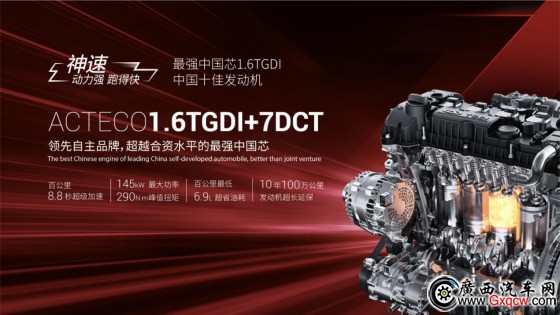 動力方面,全新一代瑞虎7神行版搭載奇瑞第三代ACTECO1.6TGDI發(fā)動機和格特拉克7DCT變速箱。其中,1.6TGDI發(fā)動機是中國品牌首款完全自主知識產(chǎn)權(quán)的發(fā)動機,榮獲過 “中國心”2019年度十佳發(fā)動機稱號。在諸多先進技術(shù)的加持下,該款發(fā)動機最大功率145kW,在2000-4000rpm轉(zhuǎn)速區(qū)間內(nèi)可實現(xiàn)290N•m的峰值扭矩,百公里加速僅需8.8秒,全面超越同級。傳動方面,全新一代瑞虎7神行版匹配的是7速濕式雙離合變速箱。該款變速箱不僅能帶來毫秒級換擋的超平順體驗,更助力整車實現(xiàn)百公里6.9L的超低油耗,讓用戶以更低的成本享受更激越、爽快的極致駕控。