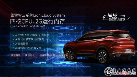全新一代瑞虎7神行版搭載奇瑞旗下的雄獅智云智能網(wǎng)聯(lián)系統(tǒng),高性能四核處理器、2G運行內(nèi)存,使其擁有媲美智能手機的運行速度。同時,為滿足年輕一代對智能互聯(lián)配置的進階需求,新車不僅實現(xiàn)全車全時高速4G-WIFI覆蓋,配備在線聽音樂、車輛遠程控制等豐富功能,還支持AI生物(人臉/指紋)識別技術(shù)。通過手機APP實現(xiàn),系統(tǒng)可對人臉進行識別,從而安全快速地驗證每次車輛操控指令。一直備受用戶好評的AI增強型自然語音交互自然也不會缺席,支持46種方言識別、語音識別率接近100%,讓用戶徹底告別“聽不懂、不明白”的語音操控窘境,于點滴細節(jié)中領(lǐng)略更智能、更高效的車載智聯(lián)體驗。