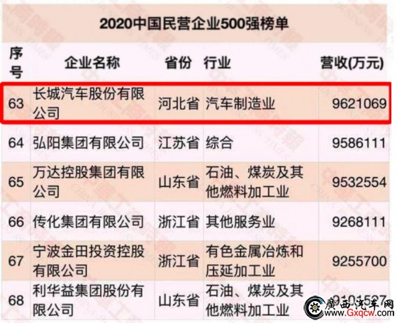 長(zhǎng)城汽車入圍2020中國(guó)民營(yíng)企業(yè)500強(qiáng)榜單