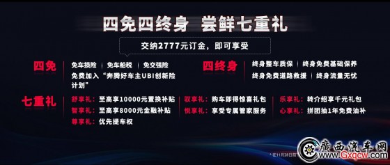 關(guān)于線下政策,涵蓋了由免車損險(xiǎn)、免車船稅、免交強(qiáng)險(xiǎn)、免費(fèi)加入“奔騰好車主UBI創(chuàng)新險(xiǎn)計(jì)劃”組成的“四個(gè)免費(fèi)”,終身整車質(zhì)保、終身免費(fèi)基礎(chǔ)保養(yǎng)、終身免費(fèi)道路救援、終身流量無憂組成的“四個(gè)終身”,以及舒享禮、智享禮、馭享禮等組成的“七重豪禮”。這些“金融組合拳”的打出,進(jìn)一步為用戶降低購車門檻、減輕購車經(jīng)濟(jì)壓力,不再讓他們持幣待購。