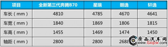 其次是超越合資的限制尺寸。從下面表格中不難看出,全新第三代奔騰B70與吉利星瑞,同為2800mm超長軸距。同時,全新第三代奔騰B70的車長長達(dá)4810mm,吉利星瑞車長也有4785mm。兩款車型無論在車長還是軸距上,均打破A級家轎固有設(shè)計限制,聯(lián)手為用戶帶來媲美B級車的寬敞舒適駕乘體驗(yàn)。