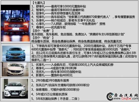 顯而易見(jiàn)的是,全新第三代奔騰B70和星瑞,均為用戶帶來(lái)超值驚喜的購(gòu)車(chē)政策。前者推出的“嘗鮮七重禮,四免四終身”購(gòu)車(chē)政策,貫穿用戶買(mǎi)車(chē)、用車(chē)、養(yǎng)車(chē)整個(gè)階段,滿足他們“一次購(gòu)車(chē)、終身無(wú)憂”的美好憧憬;星瑞方面,推出煥新禮、金融禮等豐厚購(gòu)車(chē)豪禮,極大為用戶降低購(gòu)車(chē)門(mén)檻,減輕經(jīng)濟(jì)壓力。相比之下,朗逸和軒逸在購(gòu)車(chē)政策上,站在用戶角度考慮不深刻,沒(méi)有給予用戶更高品質(zhì)的服務(wù)保障。筆者看來(lái),這種“吝嗇”的表現(xiàn),難以打動(dòng)消費(fèi)者。