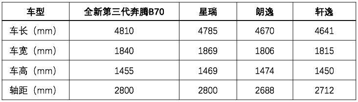 全新第三代奔騰B70與星瑞,雖均定位中級(jí)車(chē),但嚴(yán)格來(lái)說(shuō),前者車(chē)身長(zhǎng)達(dá)4810mm,后者車(chē)身長(zhǎng)達(dá)4785mm,兩款車(chē)軸距均為2800mm,這種表現(xiàn)更接近B級(jí)車(chē)尺寸,直接為用戶帶來(lái)越級(jí)舒適享受。上圖中,無(wú)論朗逸或軒逸,在車(chē)身尺寸的全面比拼中,均大幅落后于全新第三代奔騰B70與星瑞,傳統(tǒng)中級(jí)家轎的固有設(shè)計(jì)限值,仍呈“萬(wàn)年不變”態(tài)勢(shì)。