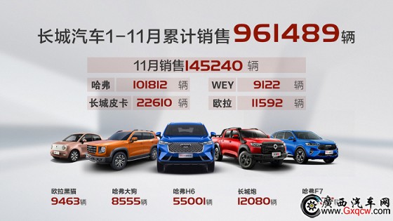 銷量層面,長城汽車一路走高。數(shù)據(jù)顯示,11月,長城汽車銷售新車145240輛,同比增長26%,環(huán)比增長7%。在此基礎(chǔ)上,長城汽車1-11月累計(jì)銷量達(dá)961489輛,再次突破100萬輛大關(guān)毫無懸念!而這,也將是長城汽車連續(xù)第五年達(dá)成百萬輛成就,中國汽車領(lǐng)軍者實(shí)力可見一斑。