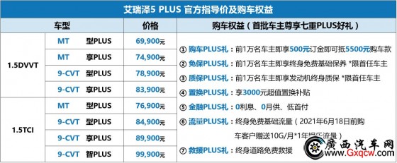 新車推出1.5L/1.5T兩種動力總成共8款車型,官方售價區(qū)間為6.99-9.99萬元。同時,奇瑞汽車還針對艾瑞澤5 PLUS推出“首批車主尊享七重PLUS好禮”,為用戶帶來更豐富、更高價值的回饋。