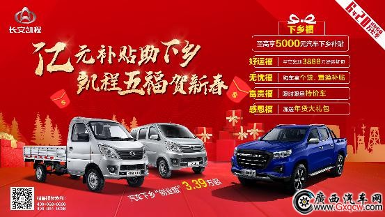 長安凱程為響應(yīng)國家汽車下鄉(xiāng)號召,特推出2款汽車下鄉(xiāng)“創(chuàng)業(yè)版”車型,僅售3.39萬元起,超低價格將好車帶回家。