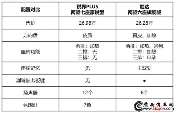 從26.98萬(wàn)起,銳界PLUS終于有了7座版,同時(shí)音響的品質(zhì)和氛圍燈的營(yíng)造也更為出色,不過(guò),這個(gè)價(jià)位的第四代勝達(dá)連第三排都已經(jīng)是電動(dòng)座椅了,在舒適性上已經(jīng)武裝到了牙齒。