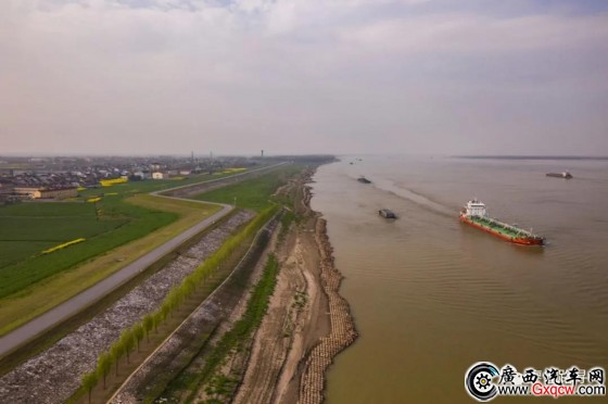 棉船島北岸長江外灘。島上的道路多建在圩堤上,頗為狹窄,加之村鎮(zhèn)密集,正好是混動(dòng)艾力紳特別能發(fā)揮節(jié)能優(yōu)勢的路段。