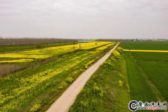 這就是安徽西南沿江同馬大堤所在的長江沿江賞花風(fēng)景線。其中的望江花田,早在2014年就被農(nóng)業(yè)部列入中國十大油菜花景觀。盡管去年發(fā)水,長江外灘因浸水時(shí)間長不易下油菜種子,不少改種了冬小麥,稍有綠肥黃瘦的遺憾,此線仍不失為3月最佳菜花線。這幾天,桃花也開了。