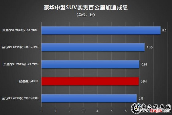 凌云400T的這一加速成績(jī)遠(yuǎn)遠(yuǎn)超越了同級(jí)奧迪Q5L和寶馬X3的2.0T標(biāo)準(zhǔn)功率版本,與兩款車型的2.0T高功率版成績(jī)接近,后兩者的百公里加速媒體實(shí)測(cè)成績(jī)分別為6.99秒和6.85秒,不過這兩款車型的最低指導(dǎo)價(jià)也分別達(dá)到了45萬(wàn)和43.68萬(wàn)。
