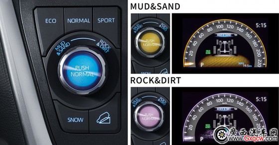 與同級競品車型相比,RAV4榮放還展現(xiàn)了多模式駕乘的便捷、舒適優(yōu)勢。它搭載四驅(qū)綜合管理系統(tǒng)(AIM),通過協(xié)調(diào)車輛的發(fā)動機、變速器、EPS電子助力轉(zhuǎn)向系統(tǒng)、制動器和四驅(qū)系統(tǒng),可在不同路況條件下,提供不凡的操控性及穩(wěn)定性。行駛到崎嶇路段,不小心被困時,RAV4榮放TRAIL模式能夠讓人一鍵輕松脫困,通過AIM統(tǒng)合控制,有效抑制車輪打滑,增加后輪扭矩分配,帶來遠超同級競品的崎嶇強悍性能。用戶還可以根據(jù)不同的路面情況,選擇適合路面狀況的模式,NORMAL模式適用于公路及一般越野路況,MUD&SAND模式適用于泥濘與沙地路面,ROCK&DIRT模式適用于多石土質(zhì)路面。不同模式,解鎖不同駕趣。