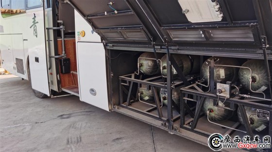 在氫能車中,氫氣被儲存在8個直徑約40厘米,長約1.8米的圓柱體儲氫瓶里,瓶內氣壓則高達70MPa。