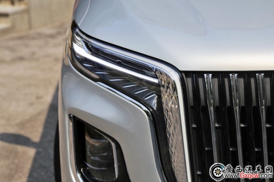 紅旗旗標(biāo)從進(jìn)氣格柵延伸至發(fā)動機蓋,這是紅旗全新設(shè)計語言的重要特征,在夜間還能隨著流水式LED日間行車燈點亮,營造出滿滿的迎賓儀式感。