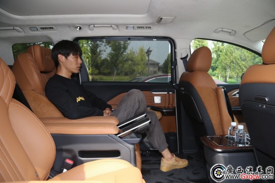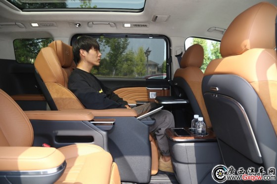 這是真正“頭等艙”級別的大班椅,令人印象深刻的是它“超車規(guī)級”的寬度,用盡幾乎整個車艙內(nèi)部的橫向空間,優(yōu)點是乘坐感極爽,座椅兩側(cè)的固定側(cè)翼都不影響岔開腿放松,沒有任何拘束感,在半躺時甚至可以輕松翻個身,憑這一點就贏過某些MPV號稱頭等艙座椅但窄得讓人想起經(jīng)濟(jì)艙緊急出口的夾板椅。