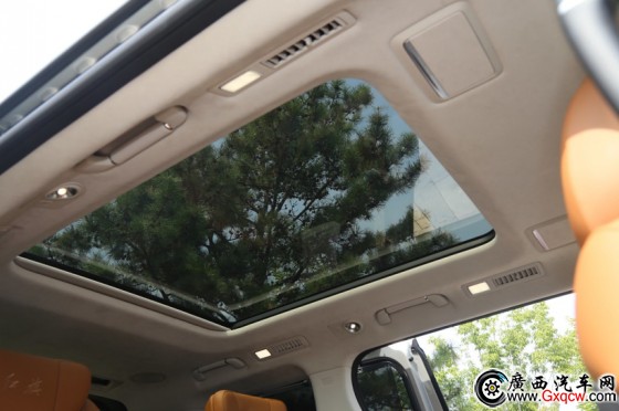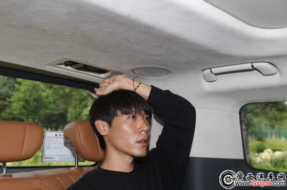 第三排乘客同樣擁有獨立空調(diào)出風(fēng)口和照明燈、杯架等設(shè)備,第三排的車窗為封閉不可打開的布置,不過位于車頂?shù)娜安A炷怀叽绶浅4,即便坐在第三排也能有很好的開揚感和采光。