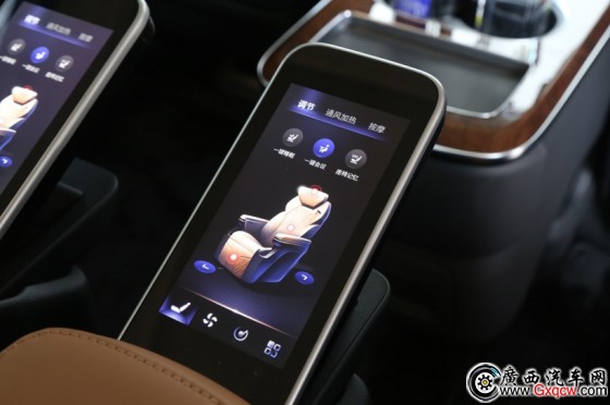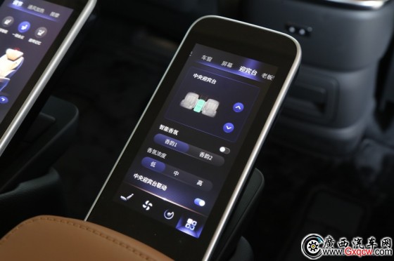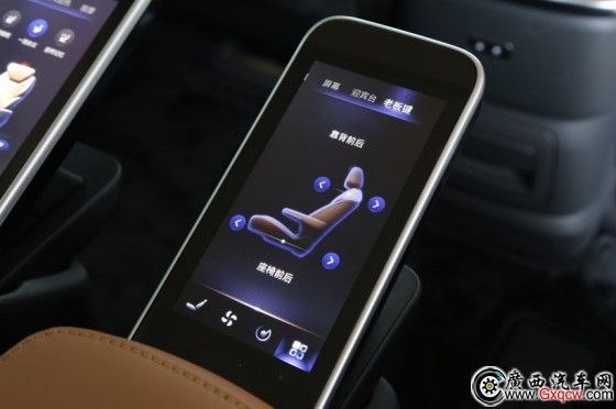 紅旗HQ9的頭等艙座椅除了夠?qū)、夠大、夠軟和舒服,頂配版自然也有頂格的舒適配置(加熱/通風(fēng)/多模式熱石按摩),還可通過可隱藏的液晶觸控屏一鍵切換場景模式。