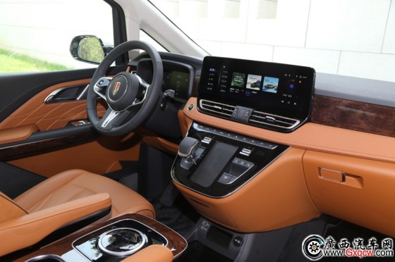 全液晶儀表+中央觸控屏功能豐富,可貴的是HQ9在空調(diào)控制區(qū)保留了實體按鍵,非常方便駕駛員在開車時盲操。前排無線充電布置在中控臺上,傾斜角度即能確保手機牢固安放,也方便駕駛員在行車時查看導(dǎo)航地圖,設(shè)計得挺討巧。