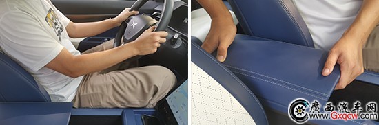 前排扶手尺寸偏小,雖然也采用了軟質(zhì)皮革材料進(jìn)行包裹,但是在正常駕駛坐姿下,駕駛員的手肘并不能依靠在上面。扶手并不支持前后或是上下角度調(diào)節(jié),無法主動(dòng)適應(yīng)駕駛員,實(shí)用性表現(xiàn)較差。