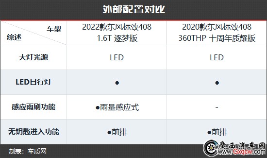 雖然新款車型在前臉設(shè)計方面較之老款變化較大,不過對比外部配置來看,新款車型的升級似乎并沒有顯得很多。當(dāng)然,這也必須要考慮到老款車型的配置水平確實(shí)已經(jīng)相當(dāng)出色,提升空間著實(shí)有限。以頂配版車型為例,在售價更低的前提之下,新款東風(fēng)標(biāo)致408非但沒有任何“減配”,反而還新增了頗為實(shí)用的雨量感應(yīng)式雨刷,性價比表現(xiàn)可謂相當(dāng)出色。