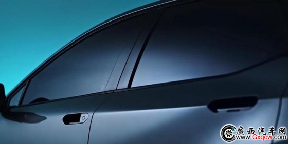 該車側(cè)面也多使用折線設(shè)計,造型較為硬朗,同時還配備了電動車常用的隱藏式門把手,值得注意的是,后三角窗的位置十分靠后,幾乎與尾部相連,如此可以保證后排乘客的通透性。
