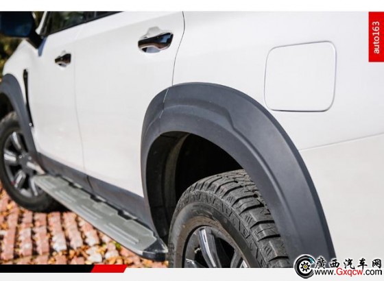 原廠出品的涉水喉,從造型到整體感設(shè)計的都很好,沒有一點突兀的感覺,有了它的存在,也能讓人一眼就能認出,這絕對是一個狠角色。超高的離地間隙自帶側(cè)踏板及粗壯的輪眉等元素也強調(diào)著硬派越野車的身份。