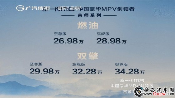 11月8日晚,傳祺全新一代M8宗師版上市,指導(dǎo)價(jià)為26.98萬-34.28萬。新車有2款汽油版車型和3款雙擎車型,主打中高端市場(chǎng),將和老款M8同堂銷售。