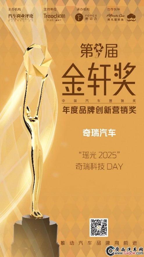 ●6月17日,奇瑞汽車憑借“瑤光2025”奇瑞科技DAY項(xiàng)目,斬獲第九屆中國汽車營銷獎——金軒獎“年度品牌創(chuàng)新營銷獎”。