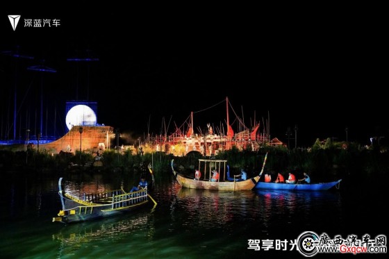 8點(diǎn)時,首港中心開啟大型全景交互式實(shí)景演藝、沉浸式近身戲劇,因正逢北海開海時節(jié),情景劇也是以開海令為始,將合浦始發(fā)港的悠久歷史、燦爛輝煌、開放包容展示出來,讓每一個踏足這座古堡的人,都能了解到合浦港的繁華過往及海絲文化的魅力。海上生明月,日落赴山海,煙火向星辰,所有人都能夠身臨其境地感受千年始發(fā)港的繁華市井生活。