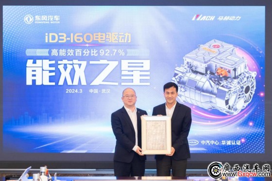 活動中,中汽研華誠認證(天津)有限公司為東風汽車頒發(fā)了“DFMR90超級增程器能效之星”認證證書、“iD3-160電驅(qū)動能效之星”認證證書。