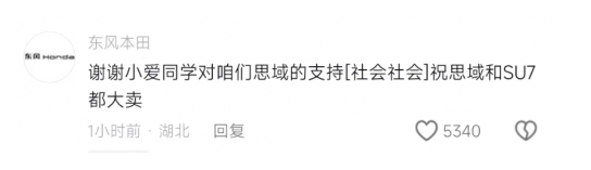 而被這潑天富貴砸中的東風(fēng)本田,也很快反應(yīng)過來,一上午忙著在評(píng)論區(qū)和網(wǎng)友互動(dòng),回復(fù)的內(nèi)容也很有趣。