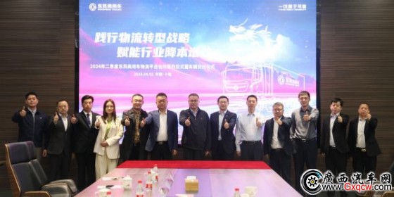 暖春啟新程,東風傳佳音。4月2日,2024年二季度東風商用車物流平臺合作簽約儀式暨車輛交付儀式,在東風商用車品牌體驗中心隆重召開。東風商用車有限公司總經理張小帆、東風商用車有限公司新事業(yè)總監(jiān)黃紹軍、東風汽車貿易有限公司總經理劉力、東風商用車有限公司公司辦主任章文鈺、東風商用車有限公司新能源及智能商品營銷部部長于子洋、湖北東貿惠誠汽車服務有限公司總經理諶佳、達州市天和貿易有限責任公司董事長李祖和、蘇州東祥汽車銷售服務有限公司總經理全盛輝、新疆東貿龍錦汽車銷售有限公司總經理鄭建文、南陽市豐融汽車銷售服務有限公司銷售總監(jiān)韓玉、四川達江運通物流有限公司總經理邵貴江、蘇州東嘉贏物流有限公司總經理孫德山、東風天龍物流有限公司總經理肖勇等經銷物流伙伴代表共同參與。