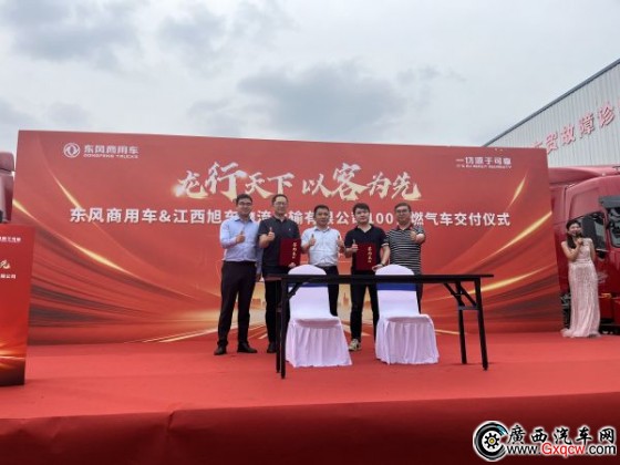 4月27日,商用車行業(yè)再傳捷報。在千年古城江西南昌,東風商用車與江西旭東物流運輸有限公司(以下簡稱“江西旭東”)達成戰(zhàn)略合作,隆重舉行了100臺東風天龍KL燃氣牽引車簽約儀式暨首批50臺交付儀式。江西旭東物流運輸有限公司總經理廖鵬,東風商用車有限公司營銷公司副總經理薛林藝、區(qū)域營銷部部長張健,東風康明斯發(fā)動機有限公司集團客戶部經理王喬,武漢榮立基業(yè)汽車銷售服務有限公司總經理王東及江西分公司總經理蔣敬等領導出席活動,雙方代表攜手交付寓意財富與幸運的車鑰匙,共同開啟二者合作共贏的新篇章。