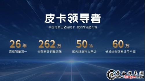 長城皮卡已連續(xù)26年銷量第一,全球累計銷量突破262萬輛。國內(nèi)終端市占率近50%,中國每賣出兩臺皮卡,就有一臺是長城。長城炮誕生四年多,全球累計用戶超60萬,累計46個月銷量過萬,蟬聯(lián)中國皮卡銷量冠軍,創(chuàng)造了“長城炮速度”,讓皮卡走進千家萬戶,成為真正的國民車。