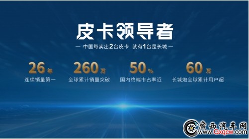 作為皮卡領導者,長城皮卡已連續(xù)26年銷量第一,全球累計銷量突破260萬輛。國內終端市占率近50%,中國每賣出兩臺皮卡,就有一臺是長城。長城炮誕生5年,全球累計用戶突破60萬,累計47個月銷量過萬,蟬聯(lián)中國皮卡銷量冠軍,創(chuàng)造了“長城炮速度”,讓皮卡走進千家萬戶,成為真正的國民車。