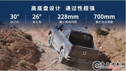 另外,新車采用高底盤設(shè)計,接近角30°、離去角26°,搭配360全景環(huán)視+透明底盤功能,通過性超強,不懼戶外惡劣路況。預(yù)留多個改裝接口,原廠自帶3噸拖掛資質(zhì)和拖車防擺功能,一車多用,拓展多樣生活。