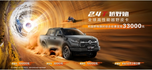 為感恩回饋廣大用戶的支持與信賴,長城炮品牌年終鉅惠活動(dòng)強(qiáng)勢來襲。即日起至12月31日,購買長城炮旗下車型享限時(shí)綜合鉅惠至高33000元。