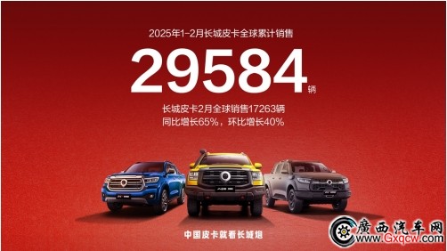 隨著全球化布局持續(xù)深化,也為長城皮卡銷量增長注入了新動能。1-2月,長城皮卡全球累計銷售29584輛,國內(nèi)終端市占率近50%,中國每賣出兩臺皮卡,就有一臺是長城。1-2月海外累計銷售9408輛,同比增長34.9%,其中2月銷售5263輛,同比勁增62.2%,進(jìn)一步提升品牌全球化影響力,引領(lǐng)中國皮卡在全球流行起來!