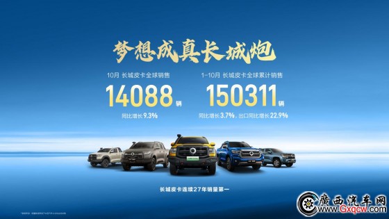 日前,長城皮卡公布10月銷量數(shù)據(jù),長城皮卡10月全球銷售14088輛。1-10月,長城皮卡全球累計(jì)銷售150311輛,同比增長3.7%。1-10月,海外累計(jì)銷售51536輛,同比增長22.9%,其中10月銷售5468輛。