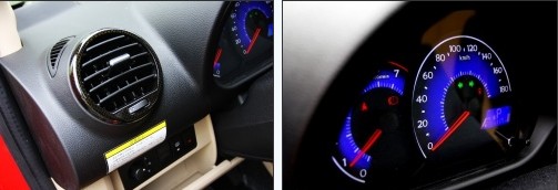 熊貓的儀表并不前衛(wèi),但藍白色搭配很清醒,也不會給人感覺沉悶,也不會給人強烈的刺激。油料和水溫都是單獨電子儀表液晶屏顯示,沒有走常規(guī)指針路線這一點也凸顯熊貓與眾不同。中控面板上的CD和空調界面有些過于普通,雖然時尚減退,但好處是利于控制成本和容易上手。