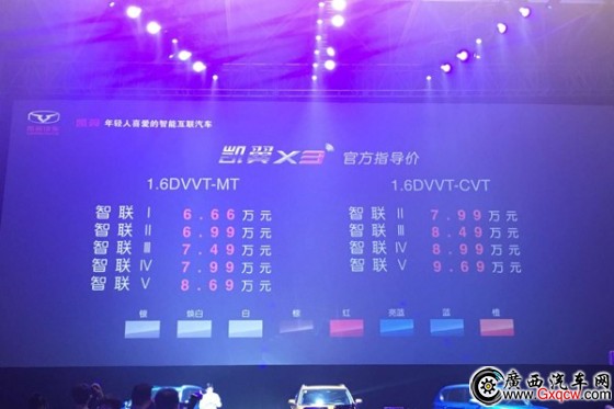 6月20日晚,凱翼汽車旗下全新SUV——?jiǎng)P翼X3正式宣布上市,新車基于i-CX概念車的設(shè)計(jì)理念,搭載1.6L發(fā)動(dòng)機(jī),共推出9款車型可選,售價(jià)區(qū)間為6.66萬-9.69萬元,具體售價(jià)信息參看下表: