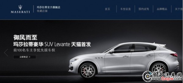 2016年3月21日,意大利豪華汽車品牌瑪莎拉蒂宣布入駐,品牌在中國的官方授權(quán)線上銷售平臺——瑪莎拉蒂旗艦店同日正式啟動,斏偈卓頢UV Levante已于23日開始預(yù)售,前100位下單訂購客戶將獲得優(yōu)先提車權(quán),成為Levante中國首批車主。與此同時,3月21日至31日期間購買瑪莎拉蒂經(jīng)典旗艦車型Quattroporte總裁轎車V6 新車的前30名客戶也將獲得尊享禮包。