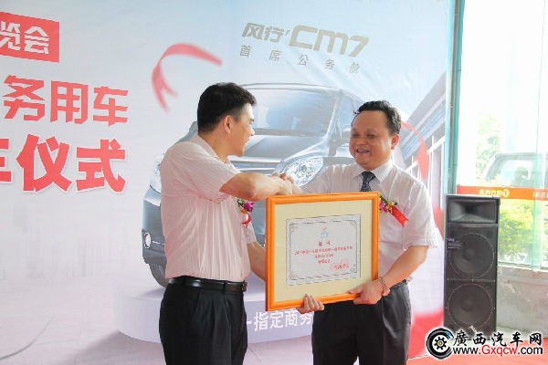 東盟博覽會秘書長黃平西向東風柳汽副總宣穎先生頒發(fā)**