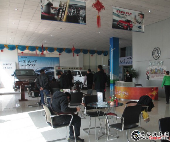 南寧坤馳汽車(chē)店內(nèi)客戶(hù)正在咨詢(xún)景逸X5