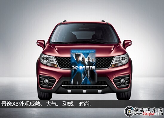 真正的戰(zhàn)警外觀總是成熟穩(wěn)重,身材標(biāo)致。景逸X3也一樣。巧合的是,景逸X3有著標(biāo)明“特殊身份”的“X”標(biāo)志:倒梯形黑色蜂窩狀進(jìn)氣格柵,與下護(hù)板共同構(gòu)成“X”面孔,使前臉充滿力量感;多邊形霧燈布局,輔以鍍鉻裝飾和下護(hù)板硬派造型,凸顯年輕運(yùn)動(dòng)氣息;景逸X3的前大燈采用投射式鷹眼造型,鑲嵌富含科技感鍍鉻邊框,犀利而深邃,如X戰(zhàn)警的眼神,時(shí)尚、動(dòng)感、大氣。景逸X3的側(cè)面采用小巧化的前后輪眉、一體式裙邊設(shè)計(jì),同色側(cè)面處理,靈動(dòng)飄逸。尾部造型做了運(yùn)動(dòng)化風(fēng)格處理,在車頂行李架以及越野護(hù)板的映襯下,呈現(xiàn)出動(dòng)感氣質(zhì)。從外觀上看,景逸X3正是為完成X戰(zhàn)警任務(wù)而來,它將伴隨著眾多涉世之初的年輕消費(fèi)者收獲屬于他們的勝利果實(shí)。