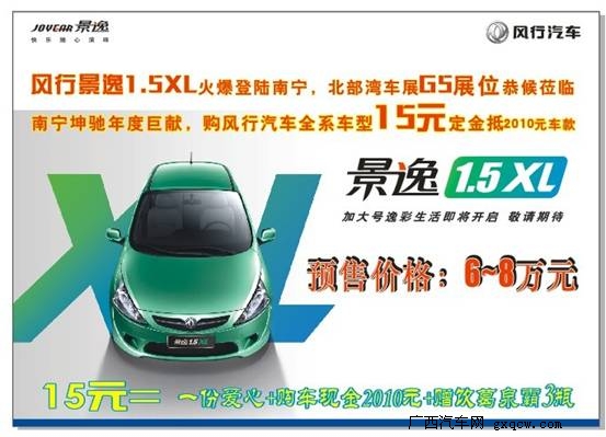 車展期間定購風(fēng)行汽車全系車型將可享受15元抵2010元的現(xiàn)金,以及廣西新秀食品有限公司提供的葛泉霸飲品。