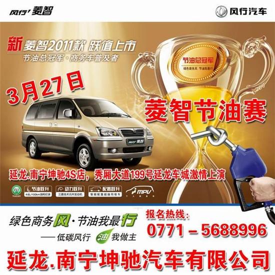 風(fēng)行汽車廣西旗艦店南寧坤馳4S店為祝賀菱智2011款上市,即日起,凡在網(wǎng)上報名購買菱智任何車型的客戶,并留下聯(lián)系方式,到店就后與接待的銷售顧問提及報名的網(wǎng)站,并出示報名的電話號碼,簽訂單只需要一百元人民幣,并免費贈送風(fēng)行廠家特供的四件套禮包(風(fēng)行雨傘、美甲套裝、鑰匙扣、筆記本)