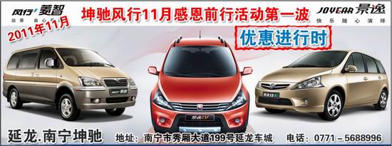 11月,又到了一年一度的感恩節(jié),景逸1.5自2010年9月18日上市,一直銷售長(zhǎng)虹,而2011年9月18日上市的景逸LV 同樣獲得了客戶的青睞。一方面是產(chǎn)品獲得市場(chǎng)的認(rèn)可,另一方面正是由著這么多所有認(rèn)識(shí)與不認(rèn)識(shí)的人的支持,才讓我們能走好,走遠(yuǎn)。懷著一顆感恩的心虔誠的給所有認(rèn)識(shí)與不認(rèn)識(shí)的人,感謝廣大的您一直以來對(duì)南寧坤馳汽車的支持與厚愛。